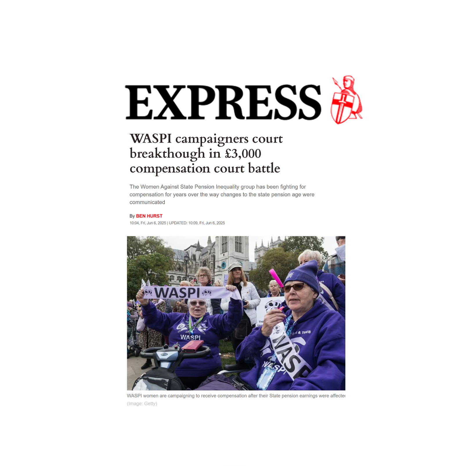 The Express reporting on the crucial announcement that WASPI has been given permission by the High Court to progress to a Judicial Review hearing. The article points out the Judge’s declaration that the case is arguable and “ought to be considered at a final hearing”