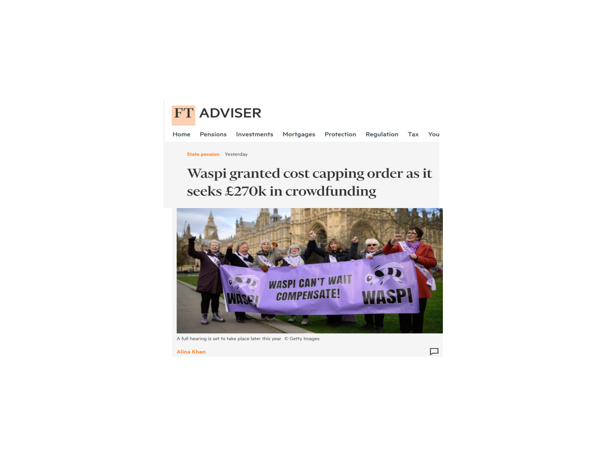 This article covers the WASPI achieving a Cost Capping order. The paper then goes on to discuss the increased stretch target for the Crowd Justice appeal, explaining why the target has been increased.