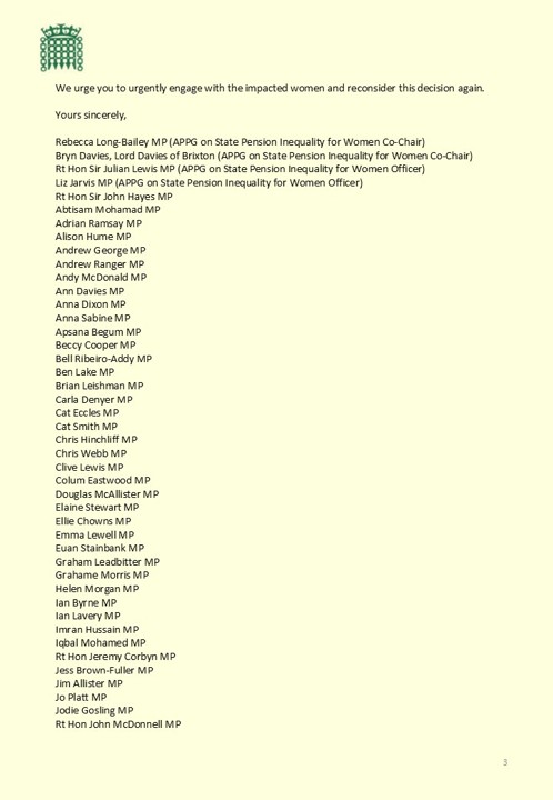 Members of the All Party Parliamentary Group (APPG) for State Pension Inequality for Women have put their reaction in writing to Pensions Ministers